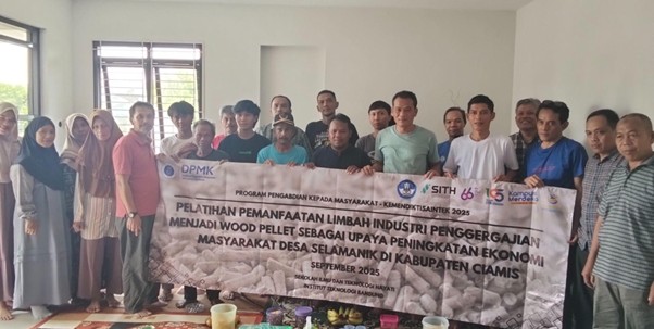 Ciamis, sith.itb.ac.id – Dalam upaya meningkatkan perekonomian masyarakat desa, sejumlah dosen dari kelompok keahlian Teknologi Kehutanan, Sekolah Ilmu dan Teknologi Hayati (SITH) Institut Teknologi Bandung (ITB) menyelenggarakan Program Pengabdian kepada Masyarakat (PPM) di Desa Selamanik, Kabupaten Ciamis. Kegiatan yang bertajuk “Pelatihan Pemanfaatan Limbah Industri Penggergajian menjadi Wood Pellet” ini berlangsung pada 27 September 2025 dan ditujukan kepada Kelompok Usaha Bersama (KUBE) Mandiri Sejahtera.