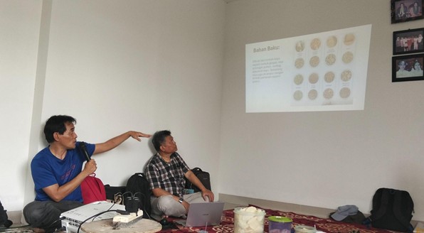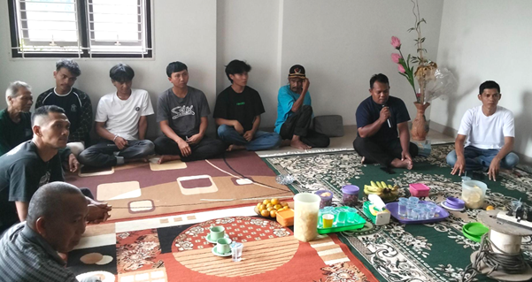 Sesi diskusi mengenai produksi pelet kayu bersama anggota KUBE Mandiri Sejahtera di Desa Selamanik, Ciamis (Dok. Tim PPM)