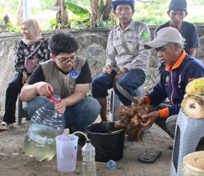 Sesi praktik pada diseminasi pupuk hayati oleh peserta kelompok tani yang didampingi oleh Tim SITH ITB.