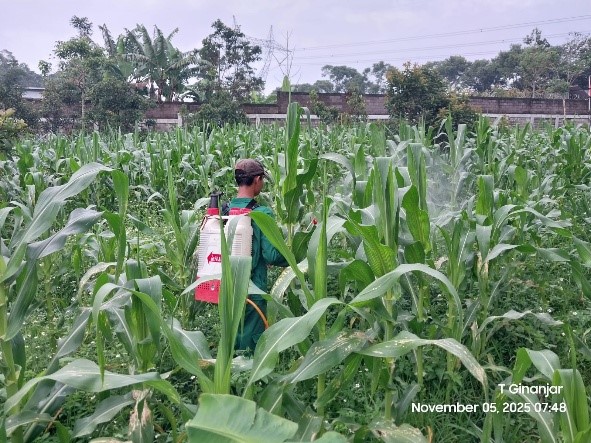 Institut Teknologi Bandung memiliki kepedulian untuk berperan mendukung Program Ketahanan Pangan melalui pengembangan teknologi budidaya pangan dan diikuti dengan diseminasi kepada masyarakat terkait seperti kelompok tani, kelompok Wanita tani dan kelompok Masyarakat penggiat pertanian lainnya. ITB melalui Direktorat Pengabdian Masyarakat dan Layanan Kepakaran (DPMK) meluncurkan Program Pengabdian Masyarakat Skema Top Down Ketahanan Pangan di Jawa Barat. Salah satu kegiatan dalam program ini adalah Aplikasi Pupuk Hayati dalam Budidaya Tanaman Sayuran dan Buah untuk mendukung Program Ketahanan Pangan di Jawa Barat. Kegiatan pengabdian masyarakat dilaksanakan oleh tim dari Sekolah Ilmu dan Teknologi Hayati ITB yang terdiri dari Dr.Ir. Dadang Sumardi, MP., Indrawan Cahyo Adilaksono, Ph.D., Tetep Ginanjar, SP.,MP., dan Kemas Abiyusuf Zaidan, ST. Kegiatan berlangsung dari bulan Juli sampai Nopember 2025. Kegiatan dalam program ini meliputi aplikasi pupuk hayati dalam proses budidaya tanaman sayuran dan buah serta kegiatan diseminasi kepada masyarakat penggiat pertanian meliputi kelompok tani, kelompok wanita tani dan siswa SMK pertanian. Pada kegiatan ini telah dilaksanakan penanaman tanaman jagung manis dengan aplikasi pupuk hayati komersial (Mustika Tani PT BGN Agripeuneur) dari bulan September dan diperkirakan akan panen di bulan Nopember 2025 di Kebun Pendidikan SITH ITB di Haurngombong, Kec. Pamulihan Kabupaten Sumedang. Hasil Panen akan disumbangkan kepada Satuan Pelayanan Pemenuhan Gizi Program MBG terdekat dengan volume sesuai hasil panen.