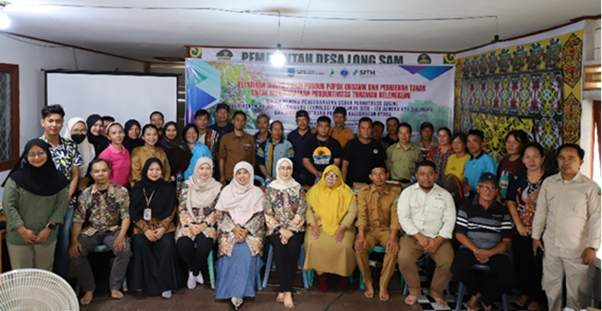 Sesi pemberian materi diversifikasi pupuk organik dan biochar kepada kelompok tani dan masyarakat Desa Long Sam.