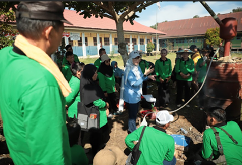 Kelompok tani dan masyarakat desa melakukan praktik pembuatan pupuk organik dan biochar dibimbing oleh Tim Dosen SITH ITB.