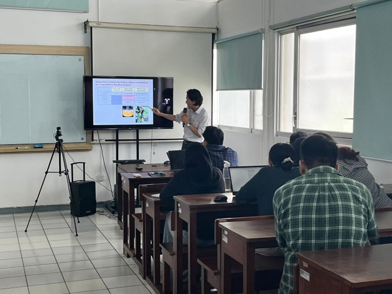 Sebagai moderator, Dr. Pramesti menyampaikan kesannya terhadap kegiatan ini. “Kuliah bersama Prof. Seki sangat menginspirasi. Beliau tidak hanya memaparkan teori, tetapi juga menunjukkan bagaimana riset bioteknologi tanaman dapat diterapkan hingga ke industri. Mahasiswa dapat melihat bahwa biologi sintetik bukan sekadar konsep di laboratorium, melainkan solusi nyata untuk produksi berkelanjutan dan ketahanan pangan di masa depan,” ujarnya.