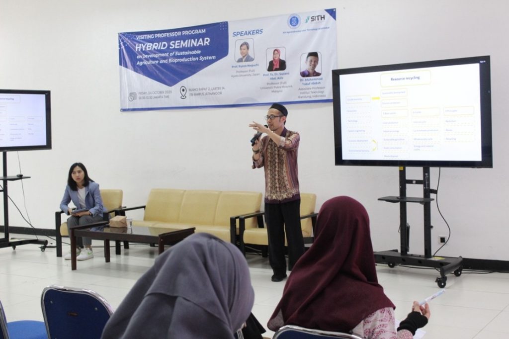 Jatinangor, sith.itb.ac.id – Menjawab tantangan global terkait ketahanan energi, pangan, dan air, Kelompok Keahlian (KK) Agroteknologi dan Teknologi Bioproduk (ATB), Sekolah Ilmu dan Teknologi Hayati (SITH), Institut Teknologi Bandung (ITB), menggelar seminar internasional bertajuk “Development of Sustainable Agriculture and Bioproduction System” pada Jumat, 24 Oktober 2025. Acara yang digelar secara hybrid, bertempat di Ruang Rapat 2, Labtek 1A, Kampus ITB Jatinangor, dan disiarkan secara daring melalui platform Zoom Meeting ini menghadirkan tiga pakar dari Jepang, Malaysia, dan Indonesia. Seminar ini mengupas tuntas bagaimana sains dan teknologi dapat menciptakan sistem produksi yang lebih berkelanjutan, dari hulu hingga hilir.
